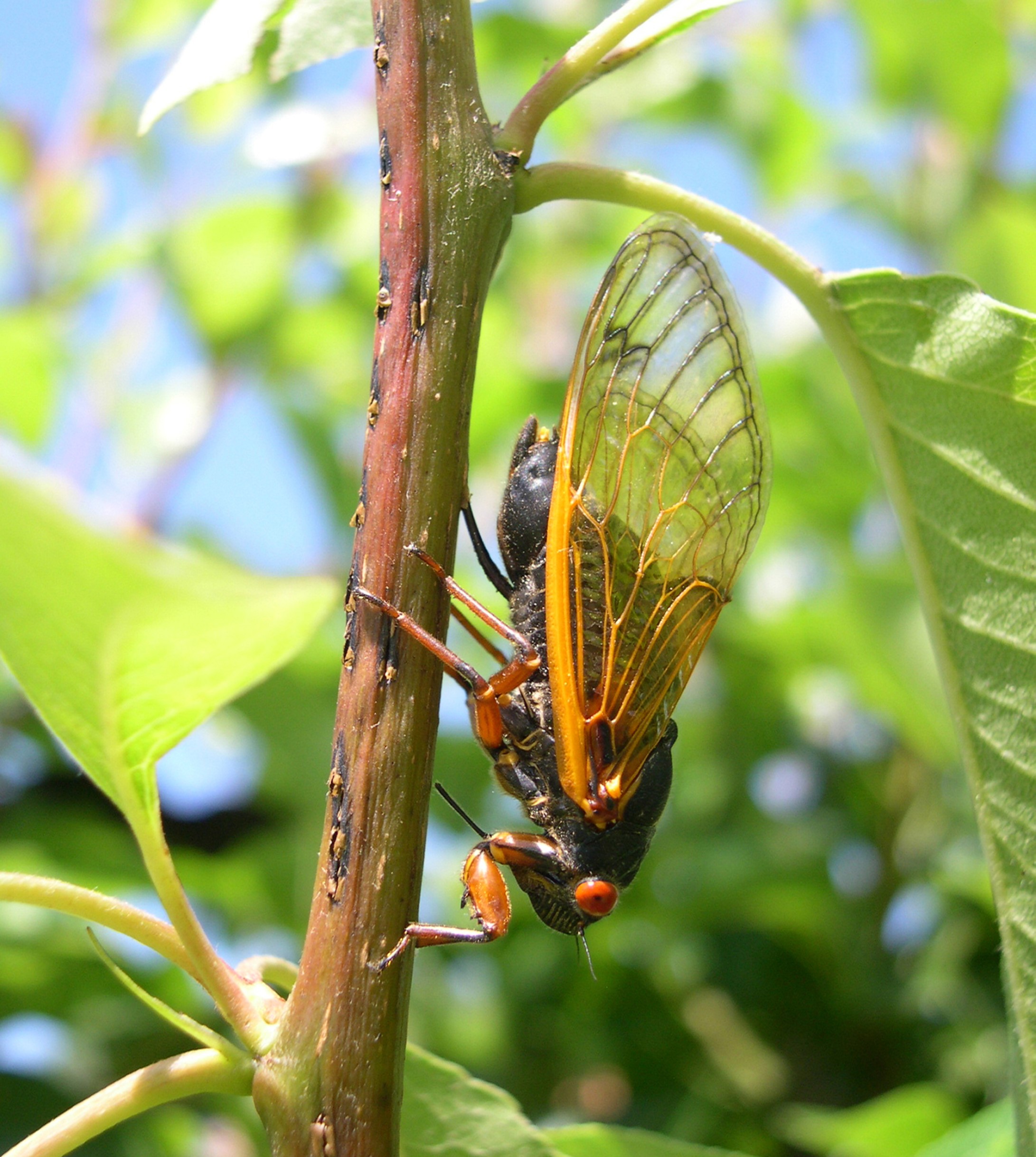 Image of an adult Magicicada septendecim, a 17-year periodical cicada, taken in Danville, Illinois, USA.